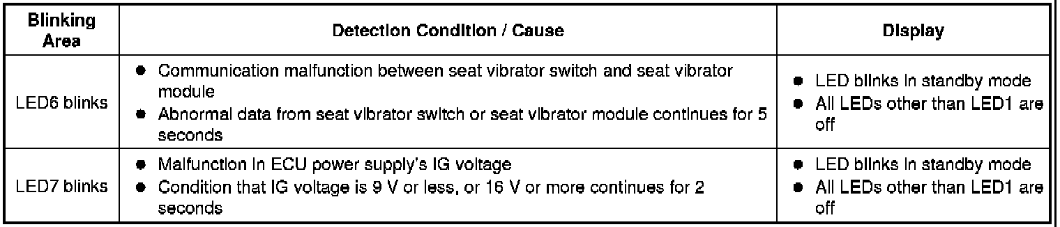 (a) 5 seconds after the seat vibrator switch SW1 is pressed, check if LED7 blinks Seat Vibration System.