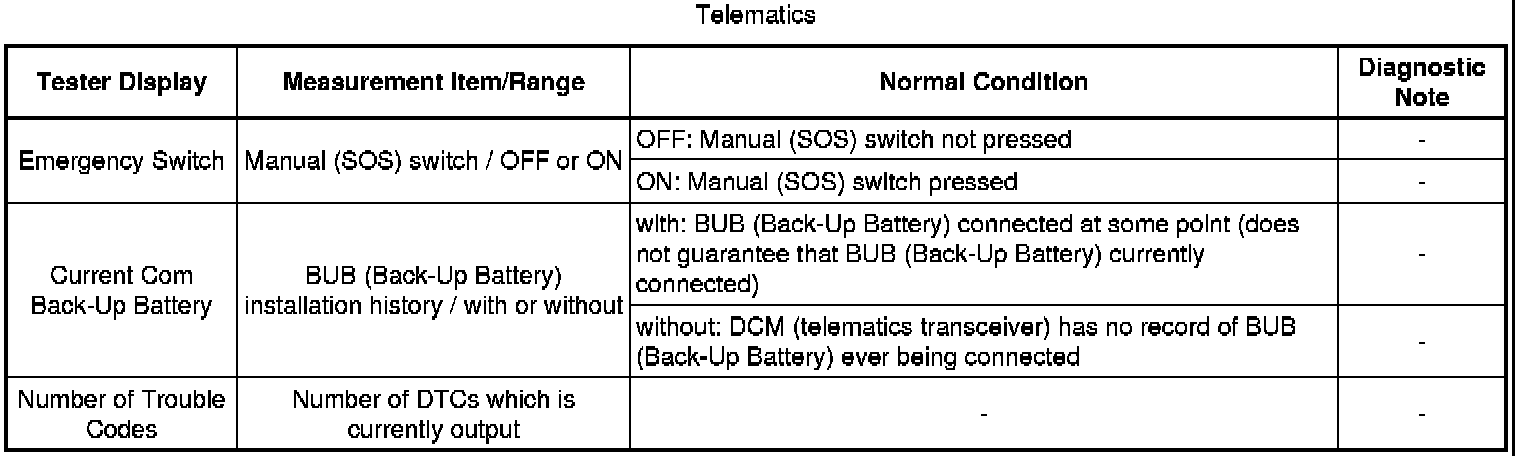 CELLULAR COMMUNICATION: SAFETY CONNECT SYSTEM: DATA LIST / ACTIVE TEST