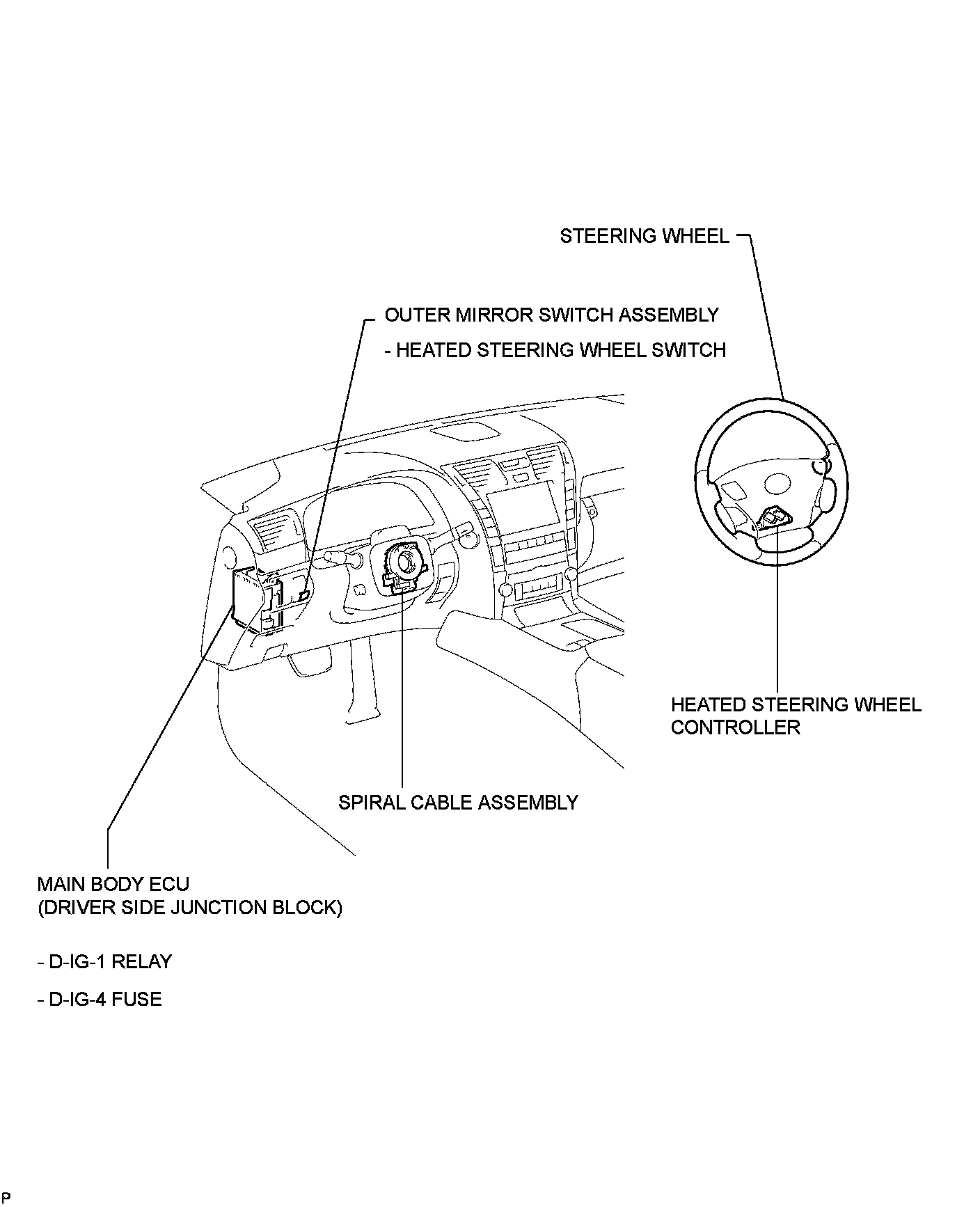 STEERING COLUMN: HEATED STEERING WHEEL SYSTEM: PARTS LOCATION