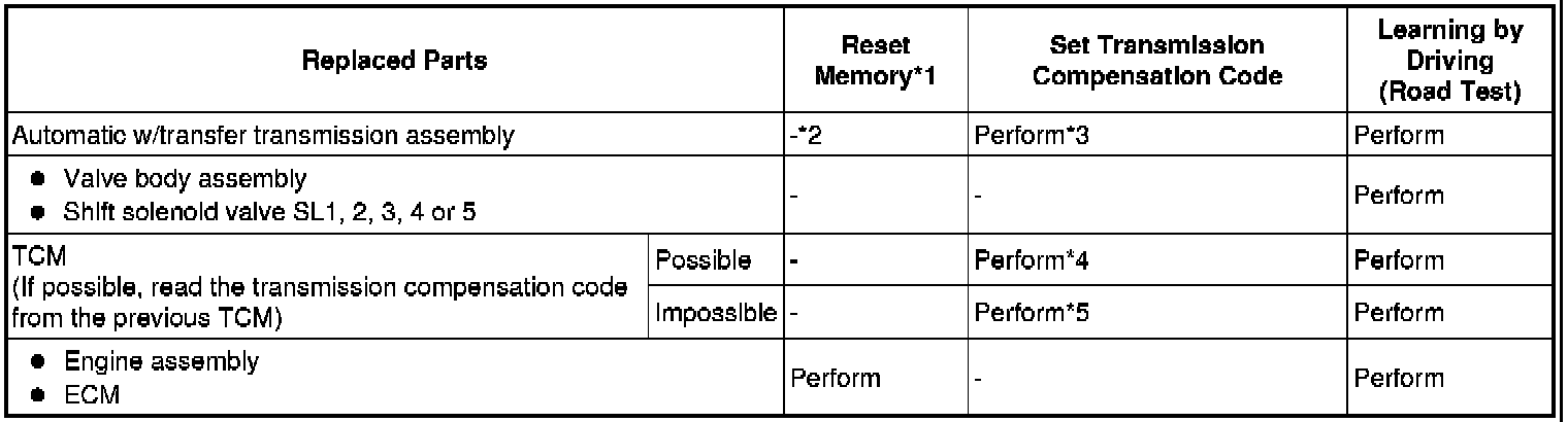 * *2: When "Set Transmission Compensation Code" is performed, "Reset Memory" is automatically completed.