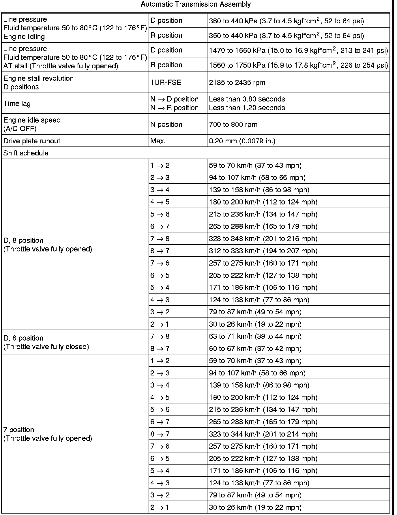 SERVICE SPECIFICATIONS: AA80E AUTOMATIC TRANSMISSION: SERVICE DATA