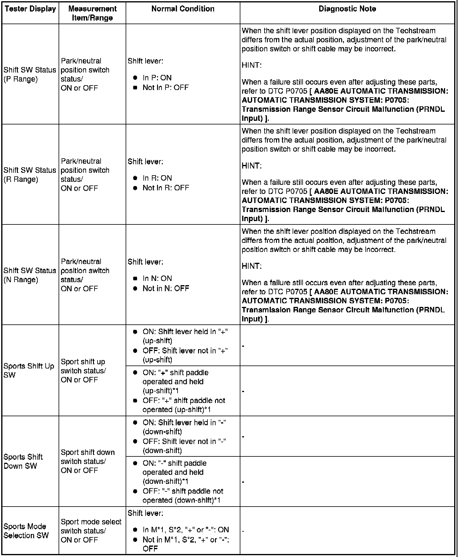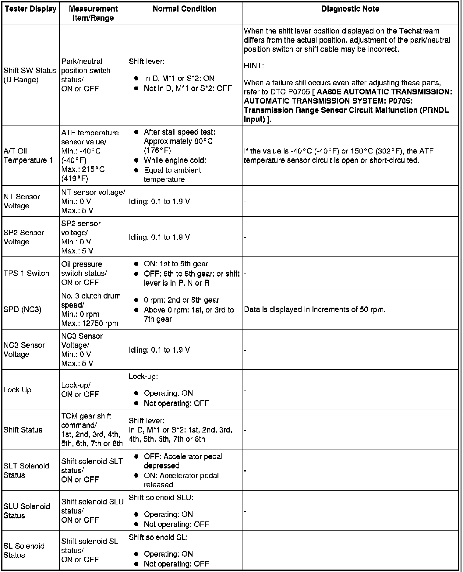 AA80E AUTOMATIC TRANSMISSION: AUTOMATIC TRANSMISSION SYSTEM: DATA LIST / ACTIVE TEST