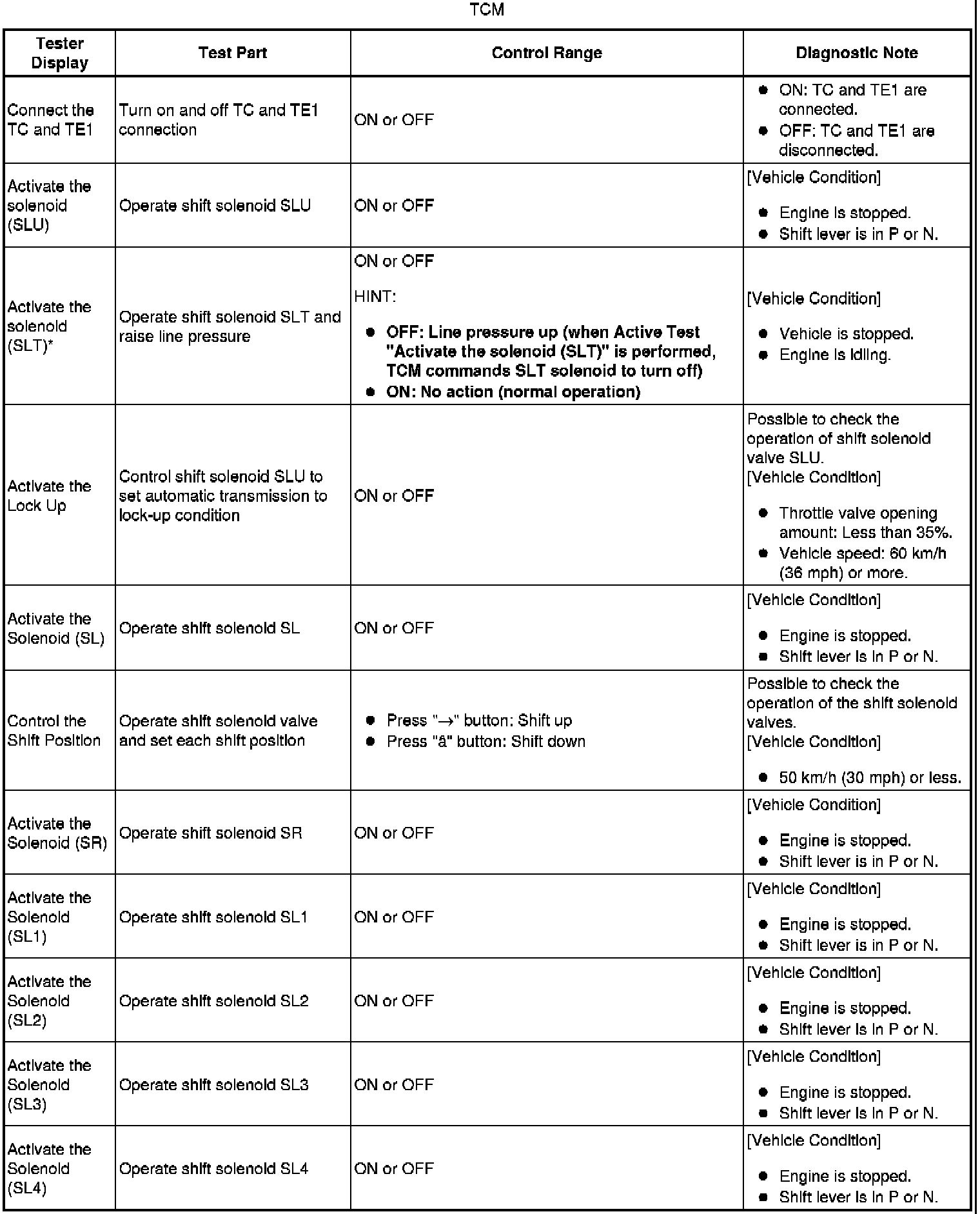 *: "Activate the solenoid (SLT)" in the Active Test is performed to check the line pressure changes by connecting SST to the automatic transmission, which is used in Hydraulic Test Hydraulic Test as well. Please note that the pressure values in the Active Test and Hydraulic Test are different.