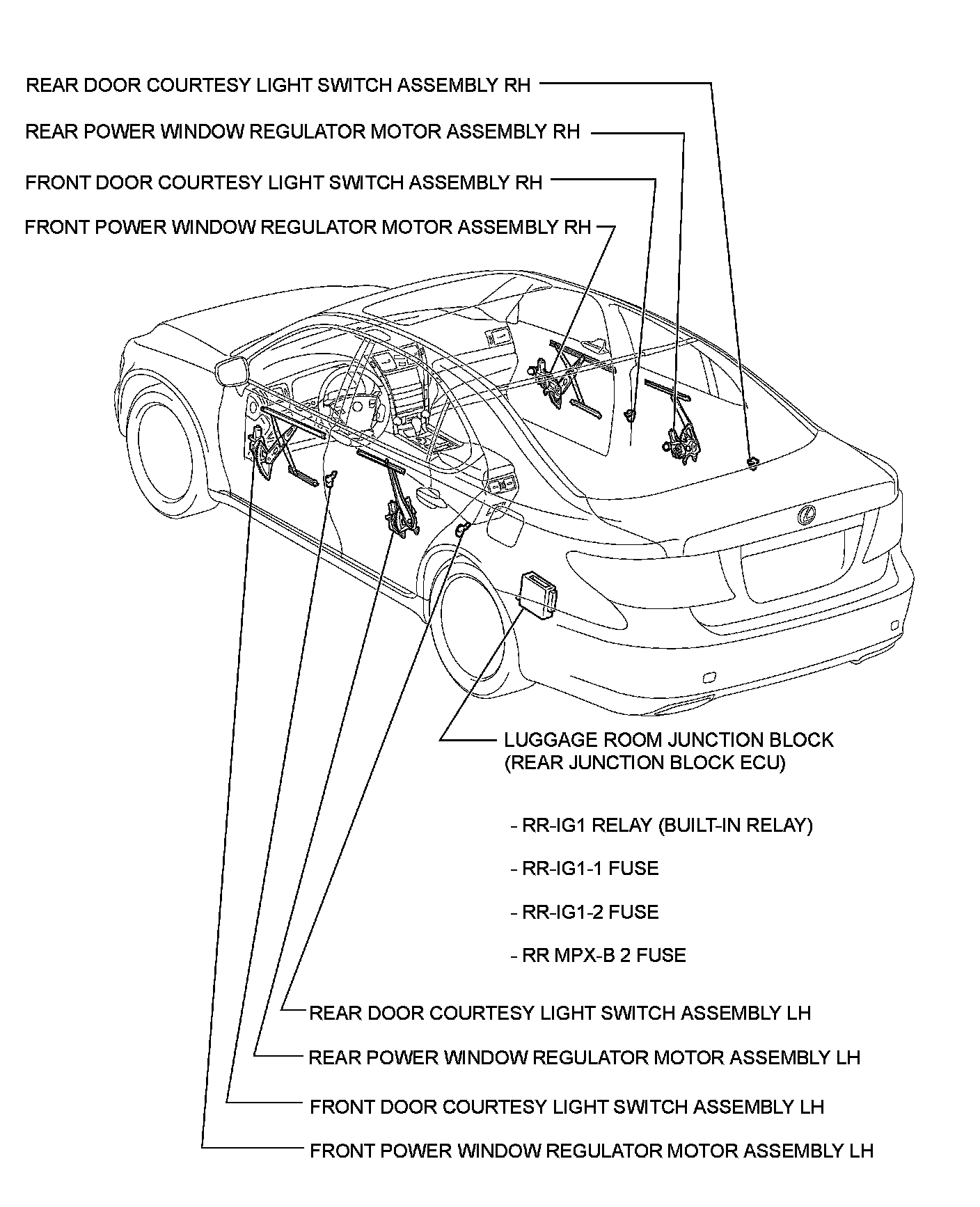 WINDSHIELD / WINDOW GLASS: POWER WINDOW CONTROL SYSTEM: PARTS LOCATION