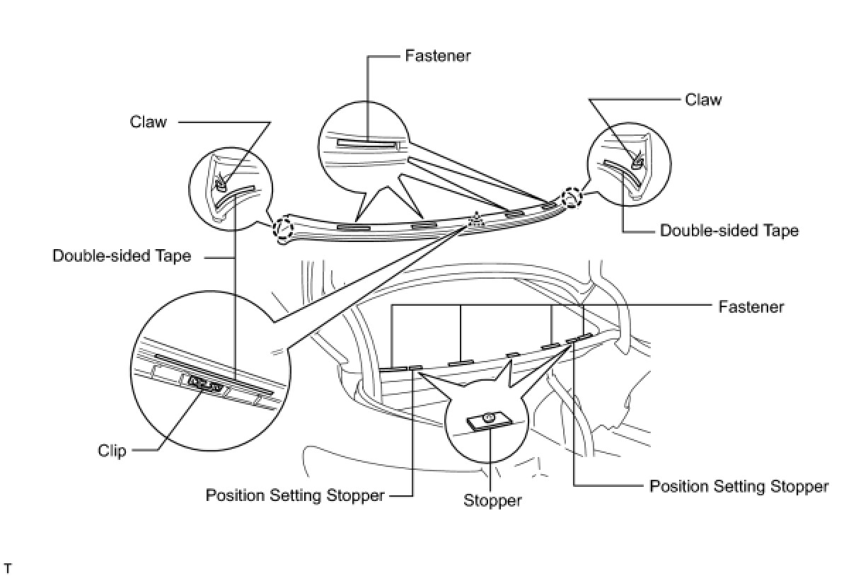 * If the stopper is damaged, the back window glass assembly must be replaced. Be careful when performing the procedure.