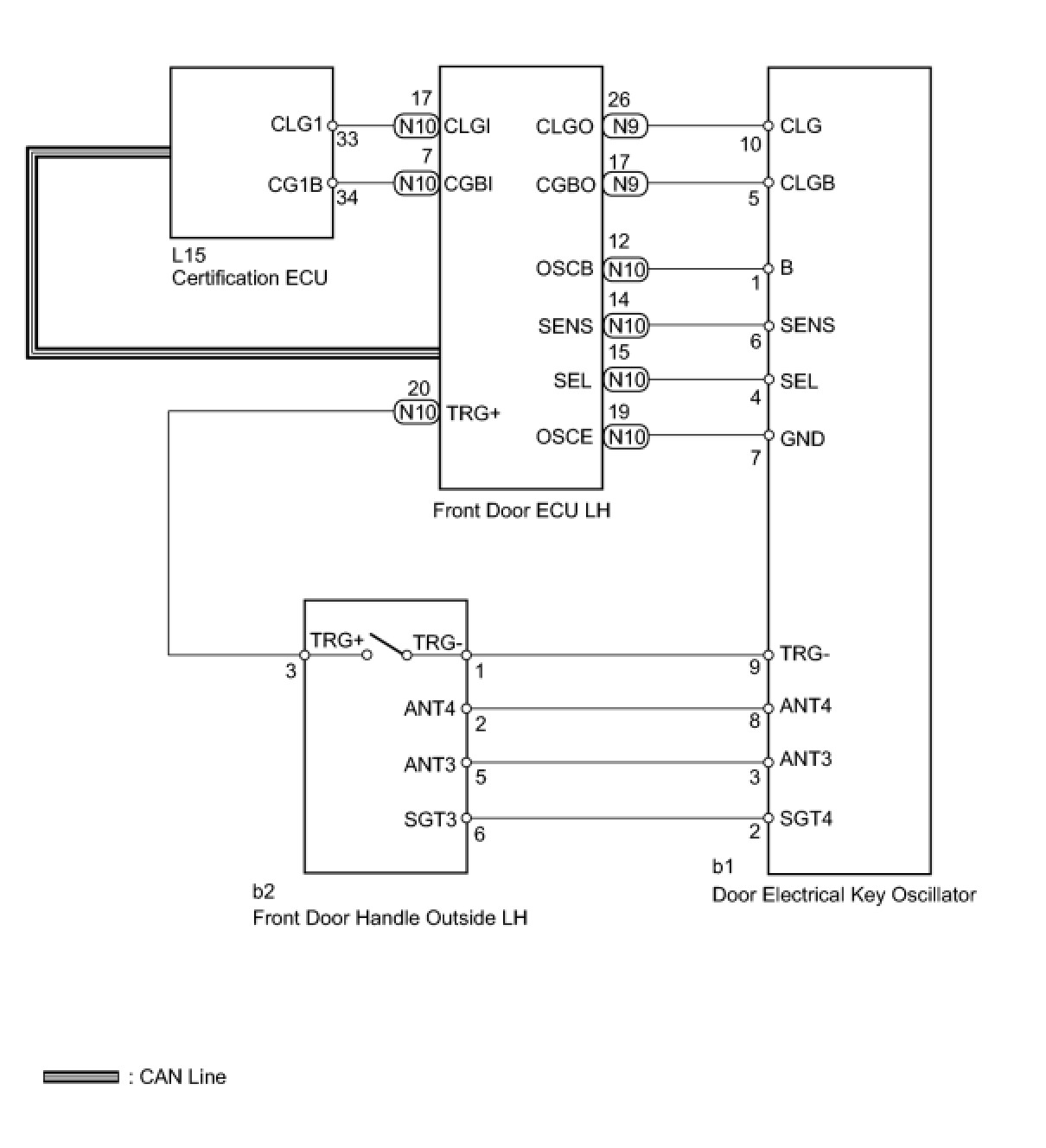 10. CHECK HARNESS AND CONNECTOR (DOOR ELECTRICAL KEY OSCILLATOR - FRONT DOOR OUTSIDE HANDLE LH)