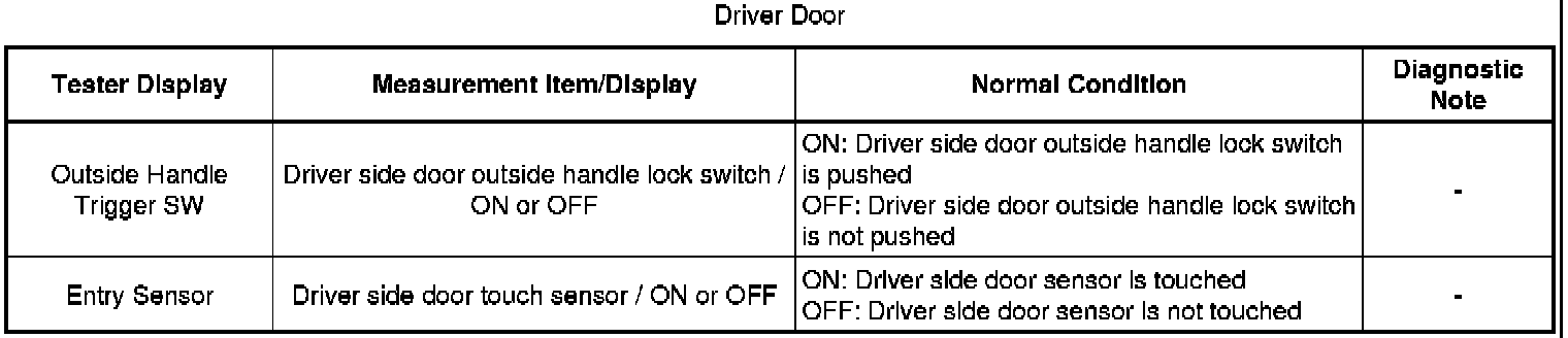 DOOR LOCK: SMART ACCESS SYSTEM WITH PUSH-BUTTON START: Driver Side Door Entry Lock and Unlock Functions do not Operate