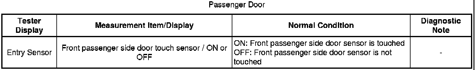 Front Passenger Side Door Entry Unlock Function Does Not Operate