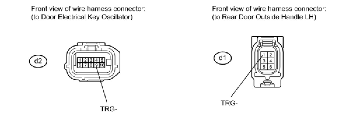 6. CHECK HARNESS AND CONNECTOR (DOOR ELECTRICAL KEY OSCILLATOR - REAR DOOR OUTSIDE HANDLE LH)