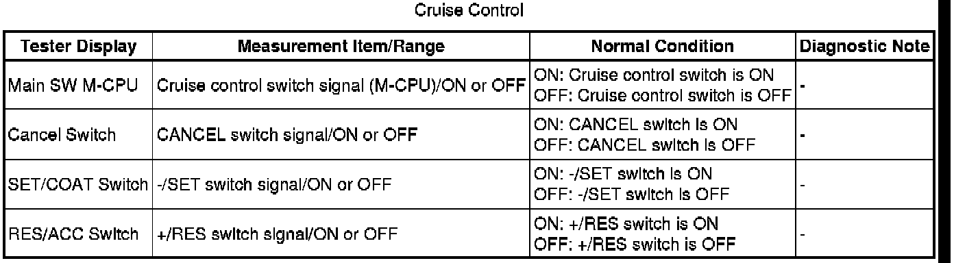 (a) Check the Data List for proper functioning of the cruise control switch Cruise Control System.