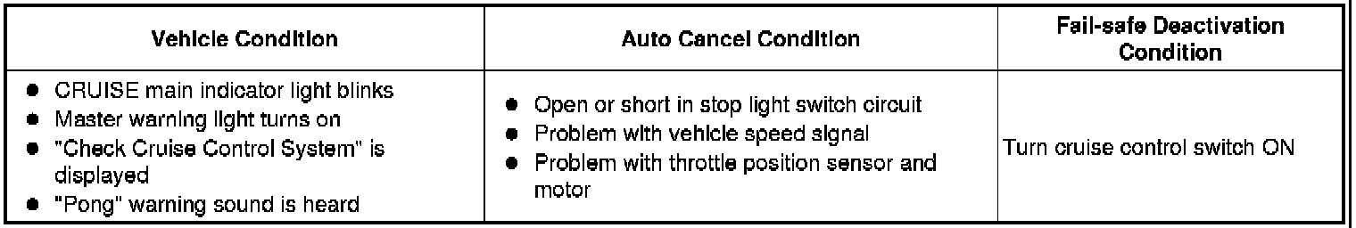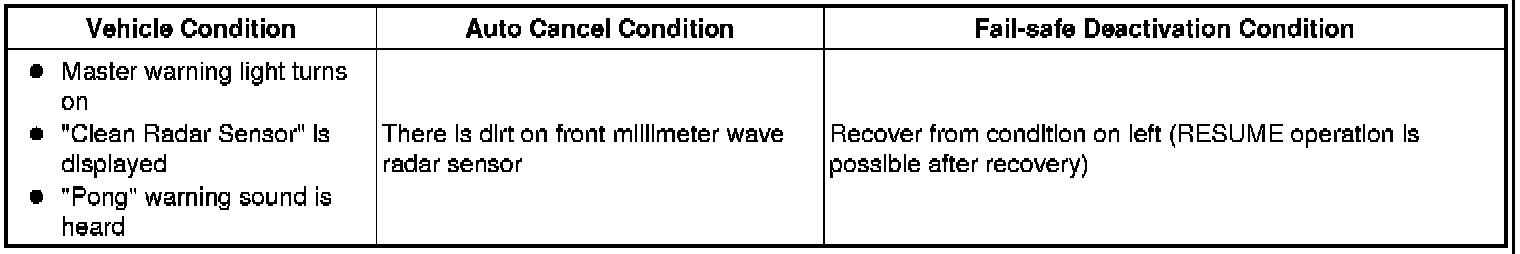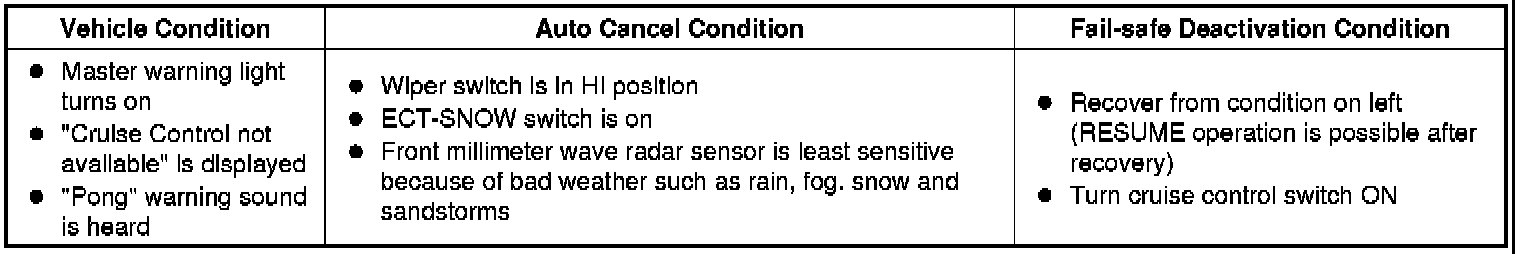CRUISE CONTROL: DYNAMIC RADAR CRUISE CONTROL SYSTEM: FAIL-SAFE CHART