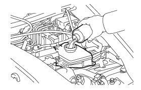 * As brake fluid may overflow, do not place the fluid can on the reservoir filler opening.