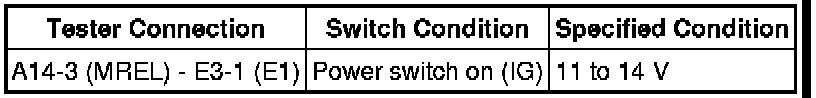 When the power switch is turned on (IG), the battery voltage is applied to terminal IGSW of the ECM. The ECM MREL output signal causes a current to flow to the coil, closing the contacts of the EFI relay (EFI MAIN2) and supplying power to terminal +B and +B2 of the ECM.