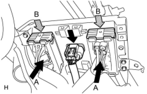 (a) Connect the 2 connectors (labeled A) and press the lock levers down to lock the connectors (labeled B).