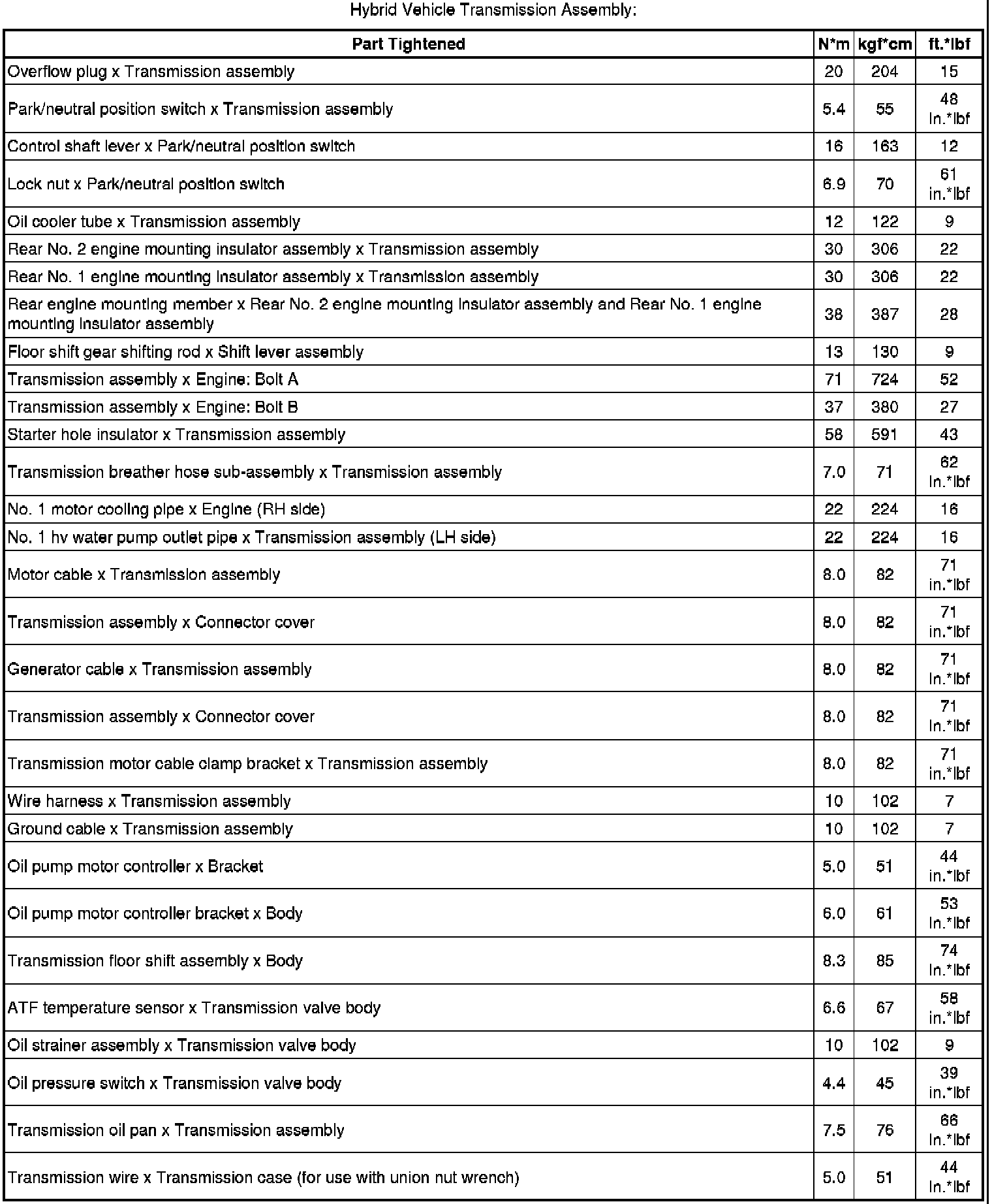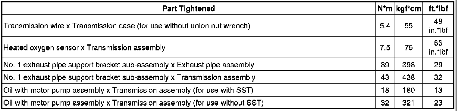 SERVICE SPECIFICATIONS: L110F HYBRID TRANSMISSION / TRANSAXLE: TORQUE SPECIFICATIONS