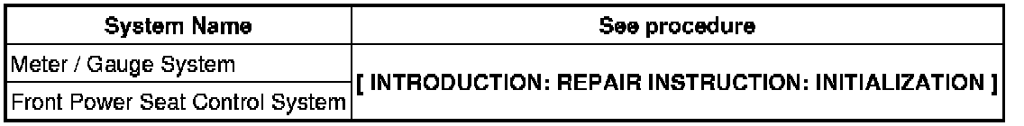 When disconnecting the cable from the negative (-) battery terminal, initialize the following system(s) after the cable is reconnected.