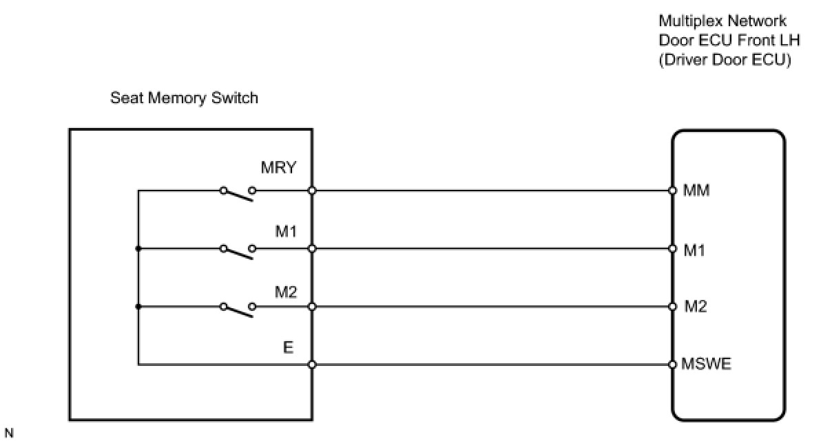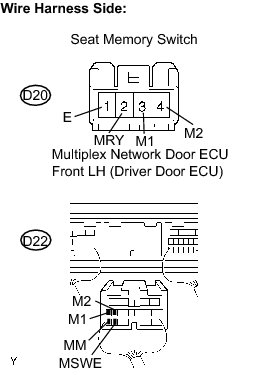 4. CHECK WIRE HARNESS (SEAT MEMORY SWITCH - MULTIPLEX NETWORK DOOR ECU FRONT LH [DRIVER DOOR ECU])
