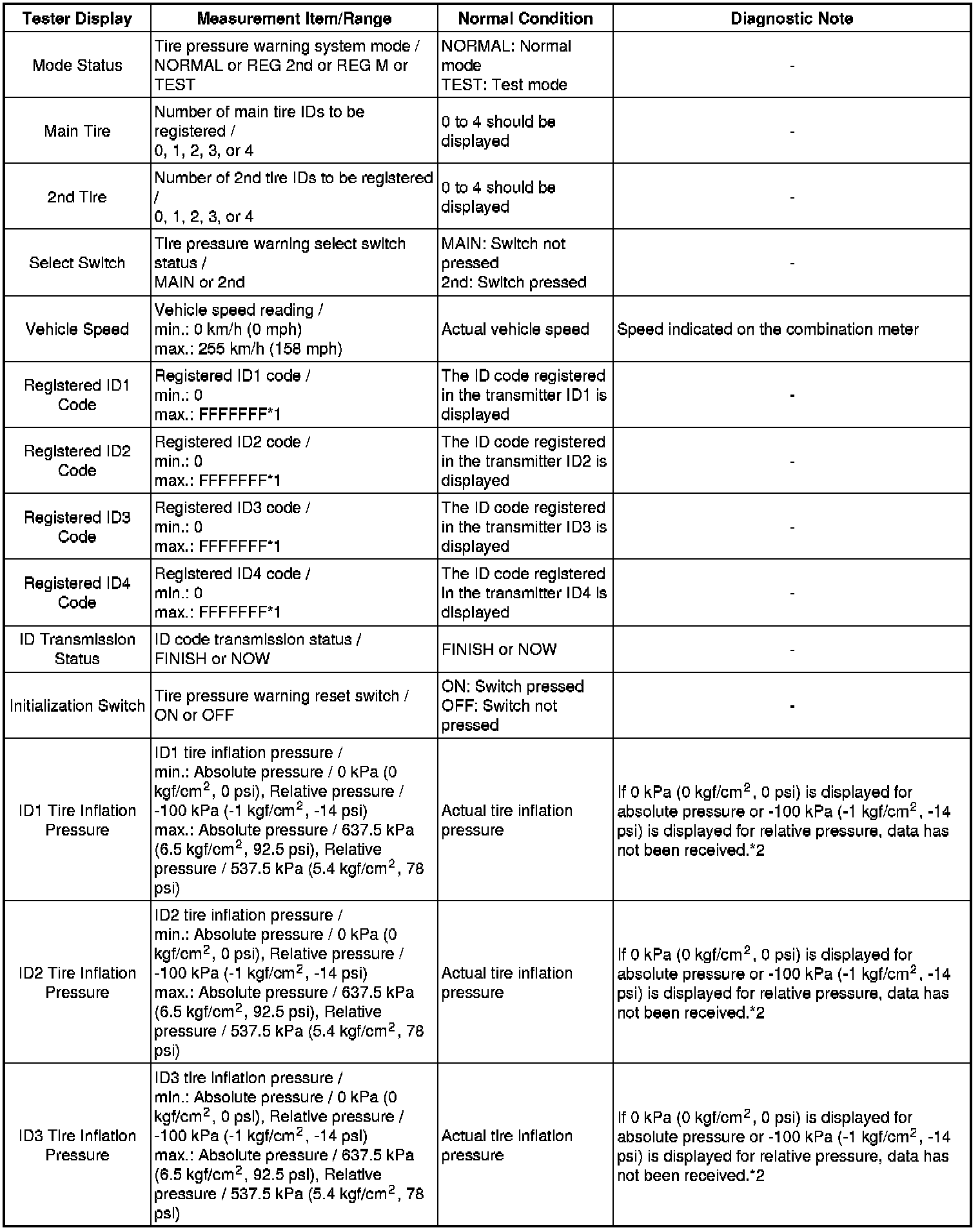 TIRE AND WHEEL: TIRE PRESSURE WARNING SYSTEM: DATA LIST / ACTIVE TEST