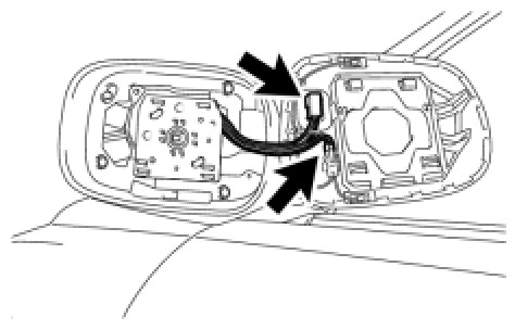 (k) Push the outside part of the outer rear view mirror assembly and tilt it as show in the illustration.