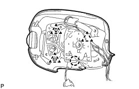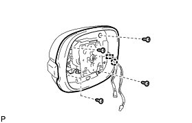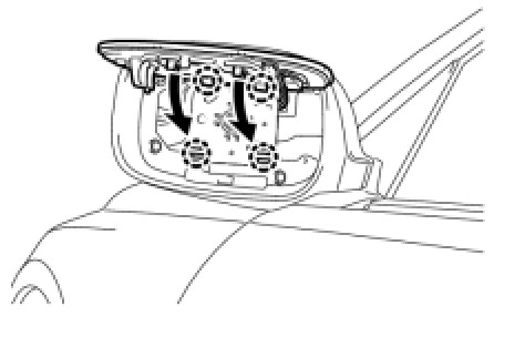 (j) Install the outer rear view mirror visor LH with the 4 screws.
