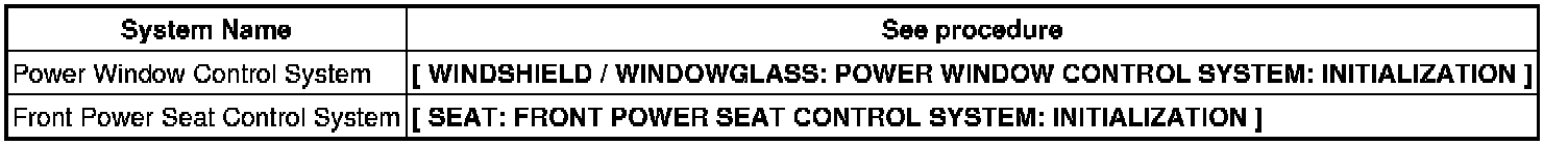 * Initialize the following systems after disconnecting and reconnecting the cable from the negative (-) battery terminal.