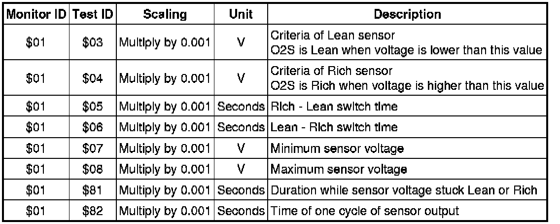 If you use a generic scan tool, multiply the test value by the scaling value listed below.