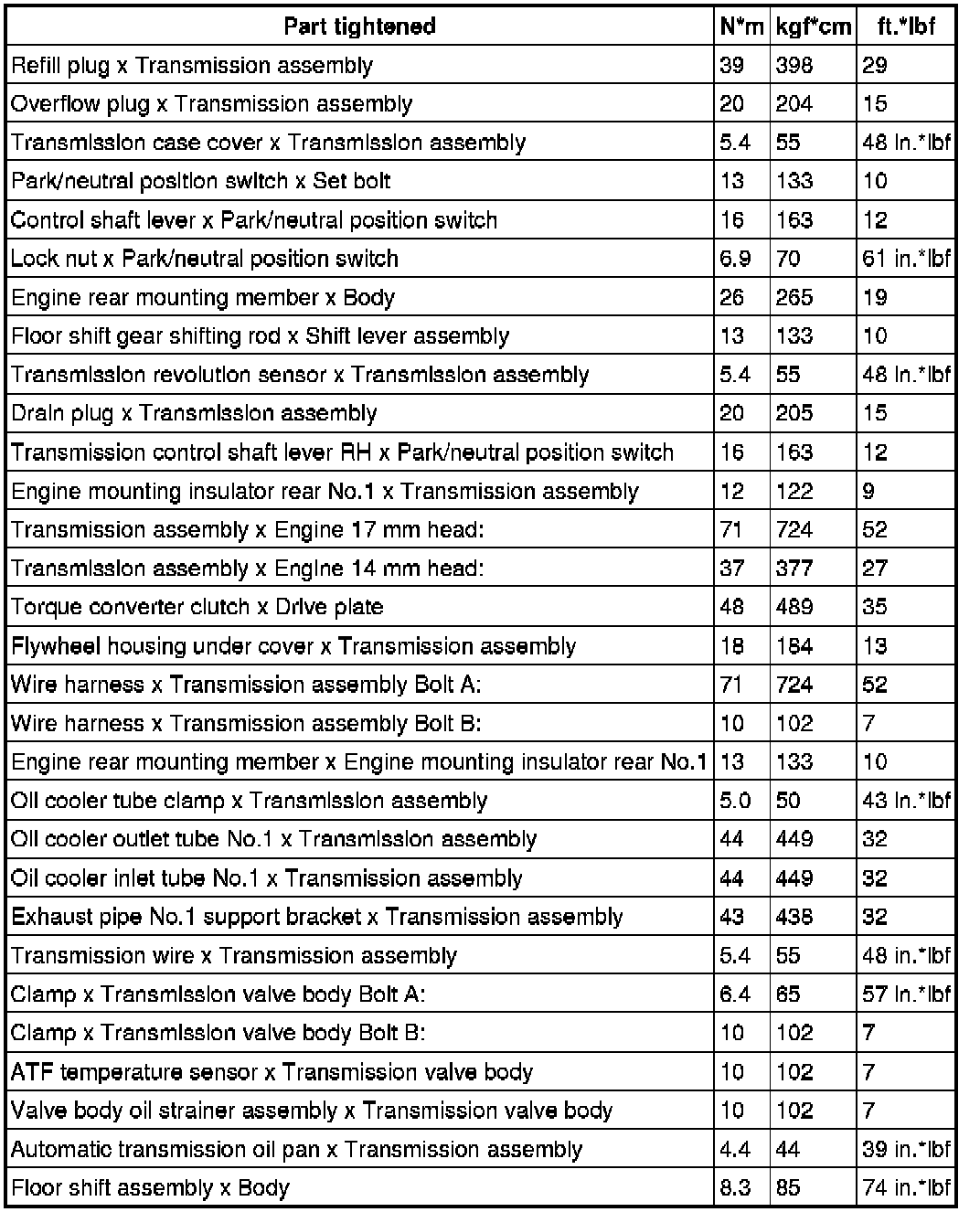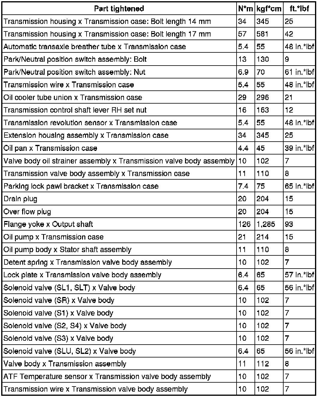 SERVICE SPECIFICATIONS: A761E AUTOMATIC TRANSMISSION: TORQUE SPECIFICATIONS