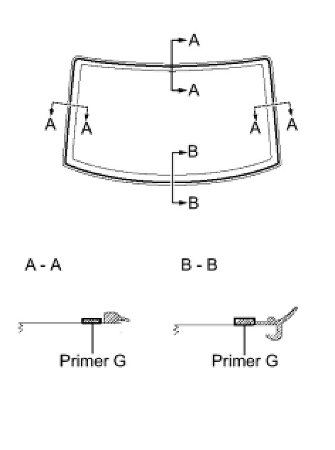 (a) Using a brush or sponge, apply Primer G to the glass where the moulding will be installed.