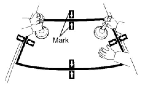 (3) Place matchmarks over the glass and vehicle body on the locations indicated in the illustration.