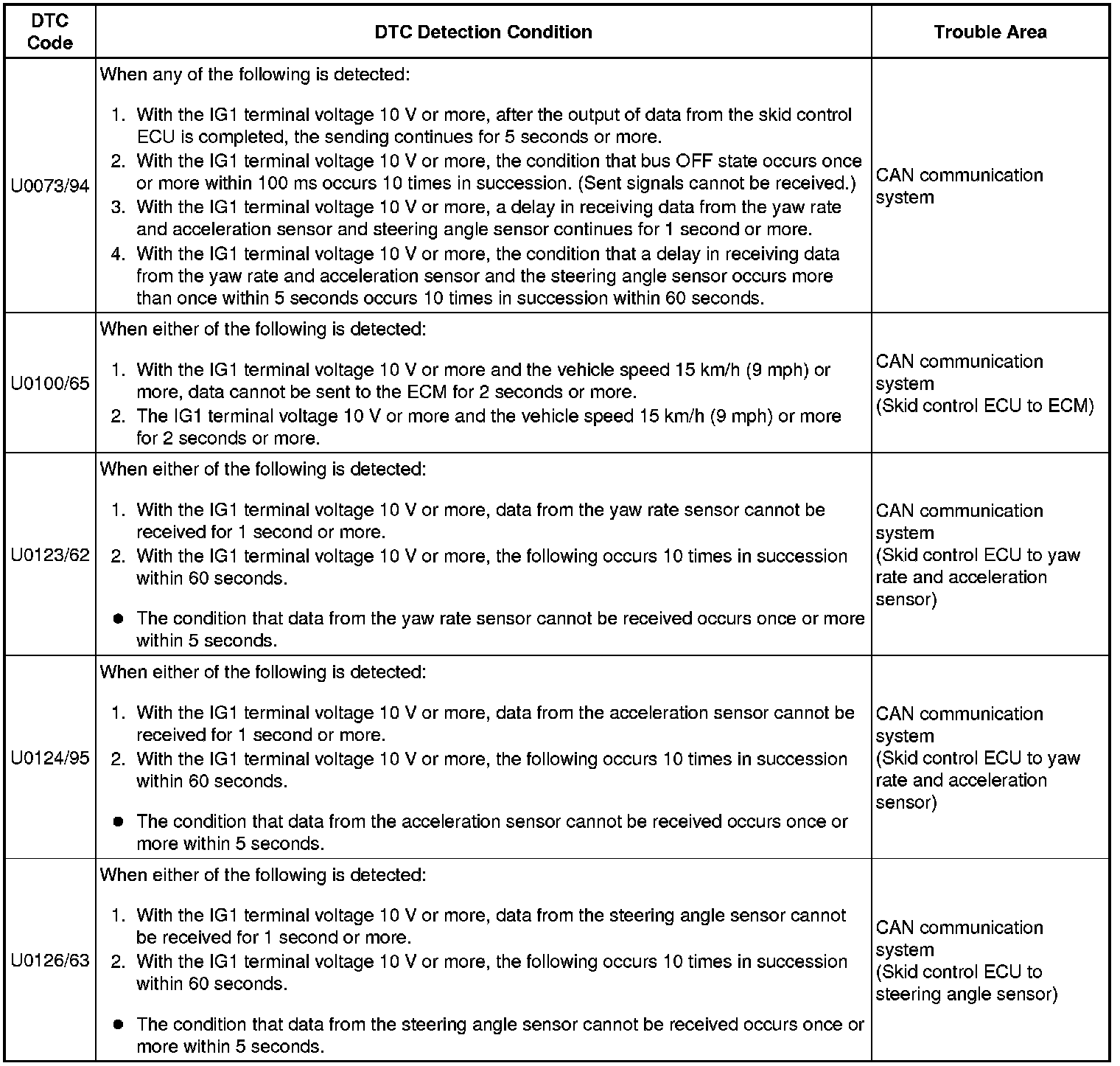 BRAKE CONTROL: VEHICLE STABILITY CONTROL SYSTEM: U0073/94,U0100/65,U0123/62,U0124/95,U0126/63: Control Module Communication Bus OFF