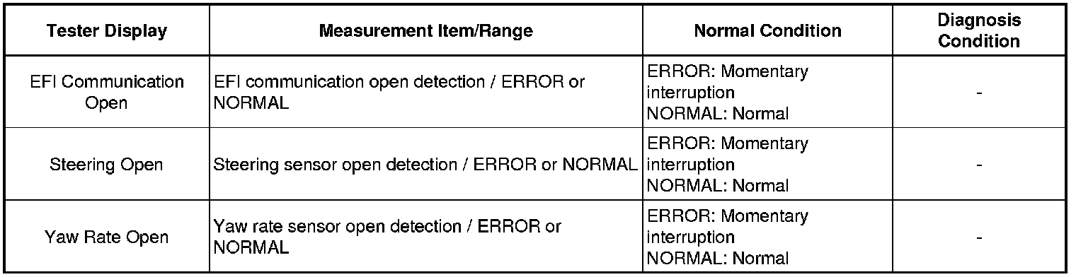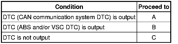 If the CAN communication system DTC and the relevant sensor DTCs are output simultaneously, troubleshoot the relevant sensor DTCs (for ABS and VSC) after the CAN communication system returns to normal.