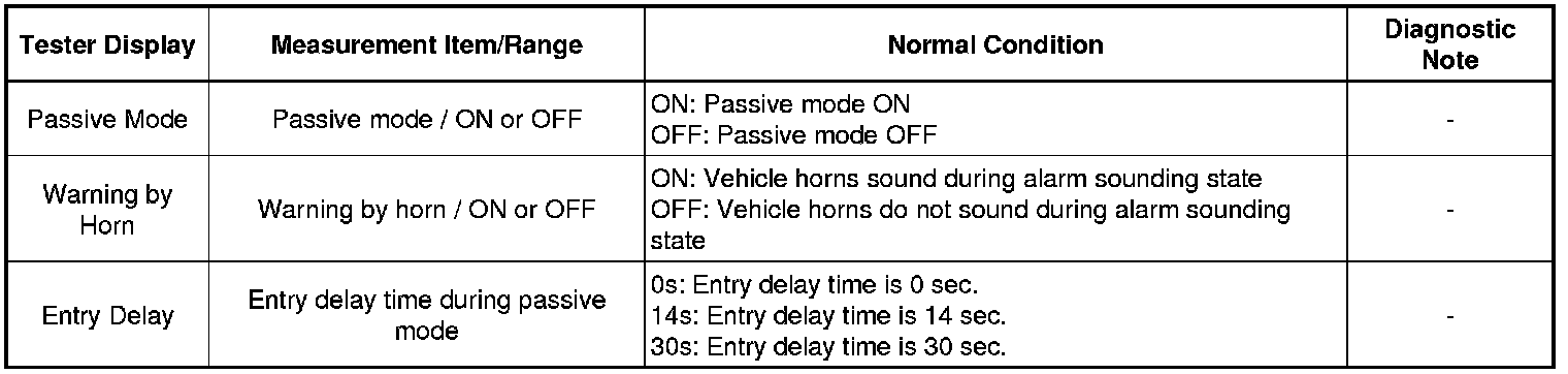 THEFT DETERRENT: THEFT DETERRENT SYSTEM: DATA LIST / ACTIVE TEST