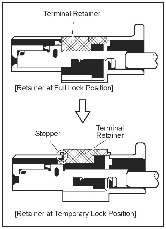 Push the terminal retainer down to the temporary lock position.
