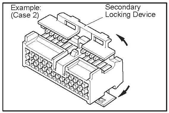 a. Locking device must be disengaged before the terminal locking clip can be released and the terminal removed from the connector.