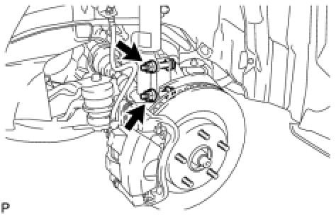 (a) Remove the 2 bolts and separate the front disc brake caliper assembly from the steering knuckle.
