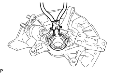 (a) Using snap ring pliers, install a new front axle hub hole snap ring.