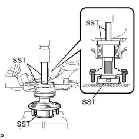 (a) Using SST and a press, install a new front axle hub bearing to the steering knuckle.