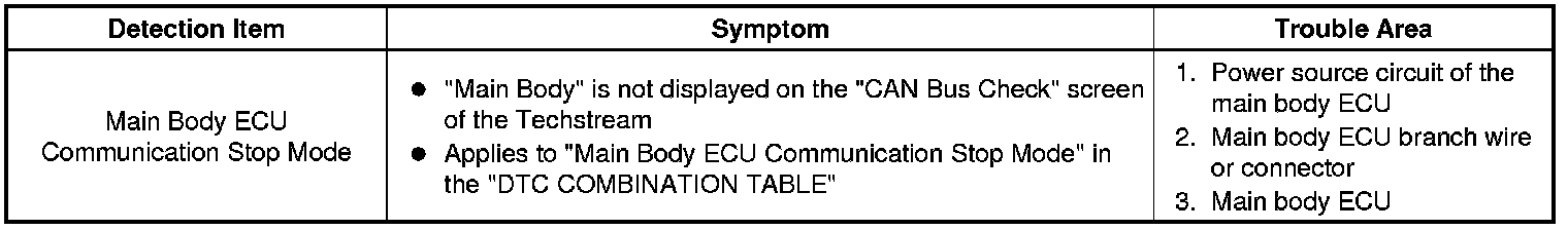CAN COMMUNICATION: CAN COMMUNICATION SYSTEM: Main Body ECU Communication Stop Mode
