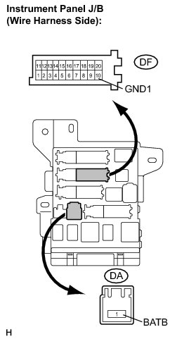 (a) Disconnect connectors DF and DA from the instrument panel J/B.