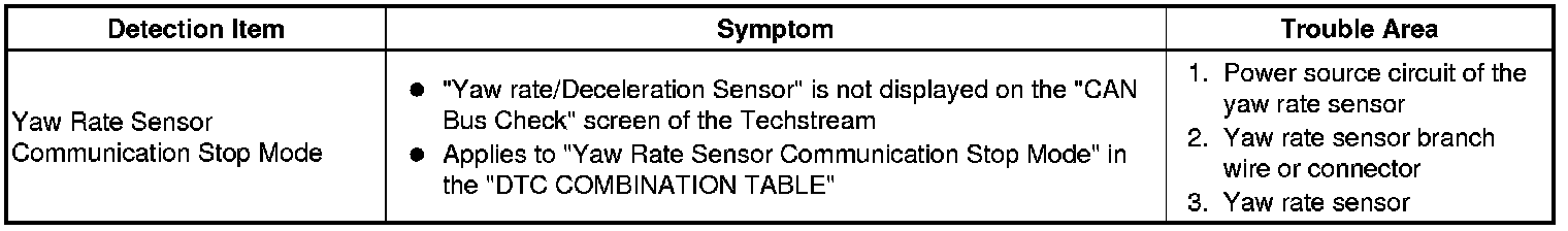 CAN COMMUNICATION: CAN COMMUNICATION SYSTEM: Yaw Rate Sensor Communication Stop Mode