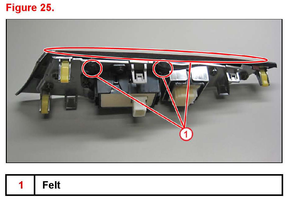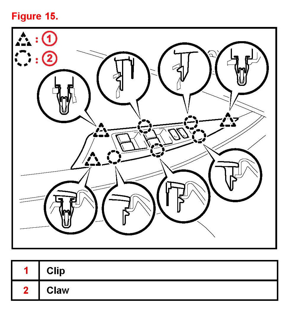 11. Connect the connector engage the 5 claws and 3 clips and install the front door switch base.