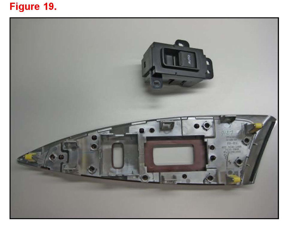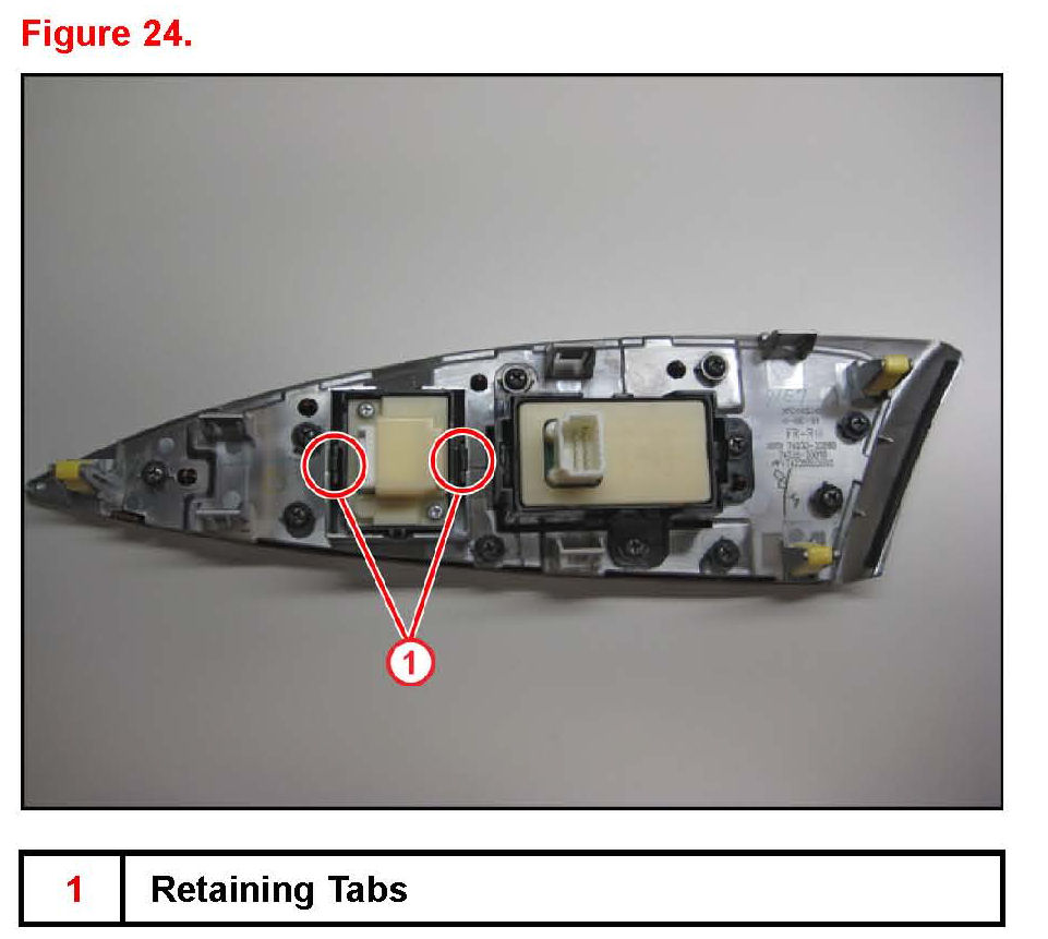 3. Release the 2 retaining tabs and remove the power door lock switch.