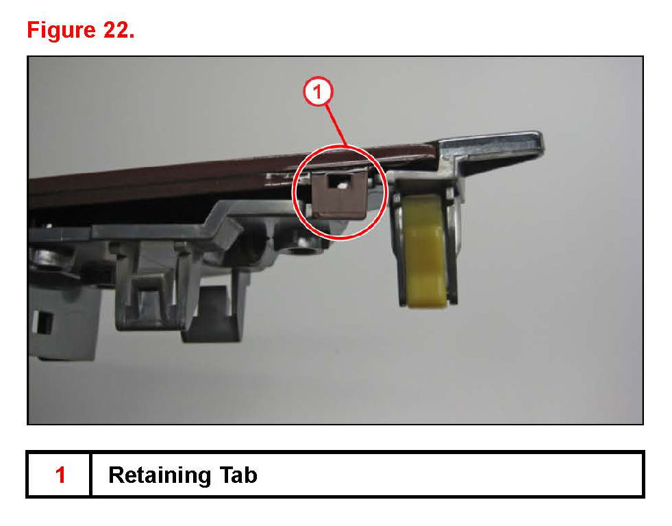 7. Fully seat the retaining tab and install the trim panel to the NEW finish plate.