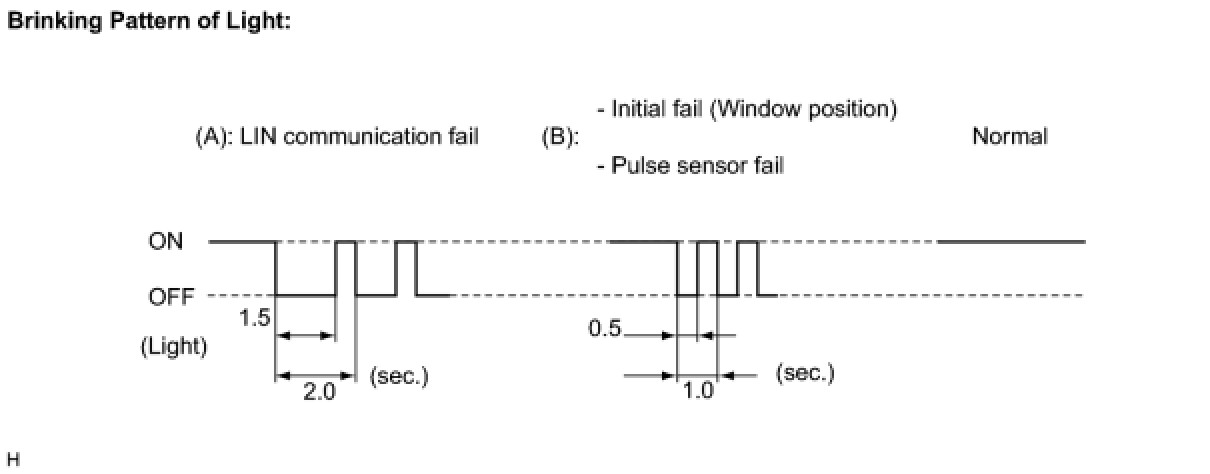 If there is a malfunction in the pulse sensor, manually operating the power window switch will cause the power window switch light to blink.