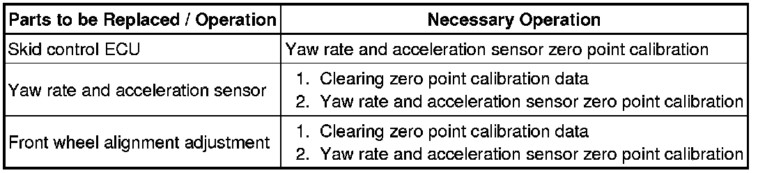 Performing the following procedure will perform the yaw rate and acceleration sensor zero point calibration, and also store system information simultaneously.