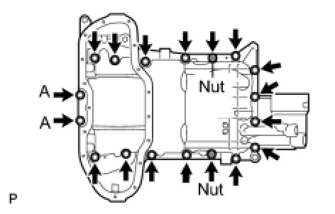 (b) Install the oil pan with the 14 bolts and 2 nuts.