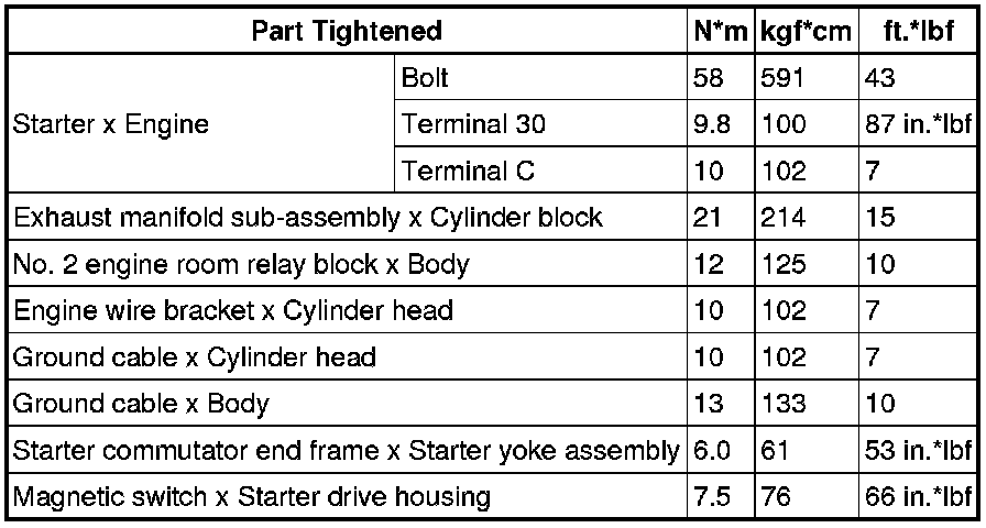 SERVICE SPECIFICATIONS: 2GR-FSE STARTING: TORQUE SPECIFICATIONS