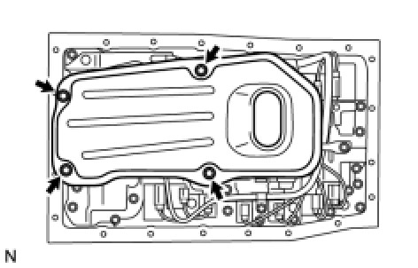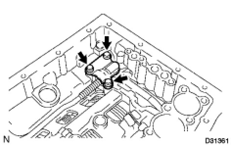 (b) Remove the 4 bolts and valve body oil strainer assembly from the valve body.