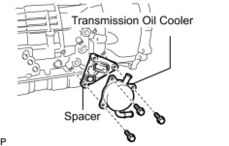 (a) Remove the 3 bolts, transmission oil cooler and spacer.