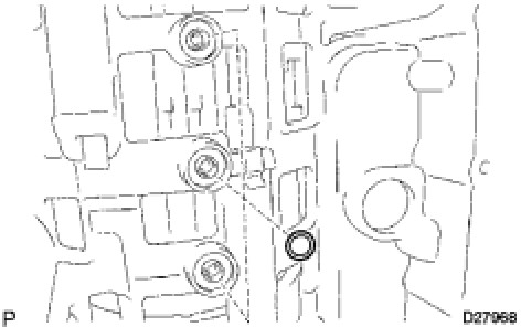 (a) While blowing compressed air into the oil hole, remove the C-2 accumulator piston and the spring.